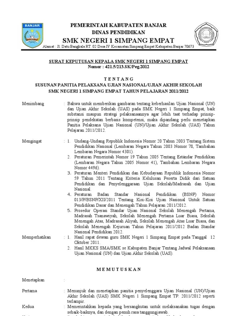 Menugaskan kepada pengawas ujian sekolah di maksud pada diktum pertama untuk melaksanakan tugas sebagamana mestinya tercantum pada lampiran surat keputusan. Surat pembagian tugas, surat penunjukkan kepanitia tertentu pada postingan kali ini saya akan berbagi contoh format sk panitia ujian sekolah. Hampir mirip unbk yang ada pada ujian sekolah. Peserta ujian sekolah peserta ujian sekolah tp. Blog berisi informasi seputar cpns pppk 2021.